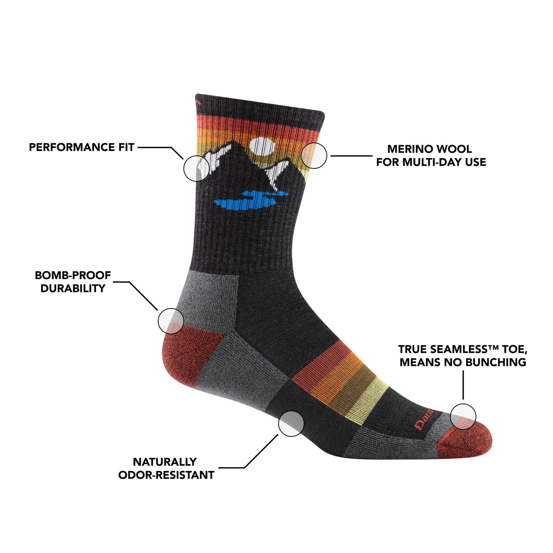 Darn Tough Men's Sunset Ridge Micro Crew Lightweight Hiking Sock