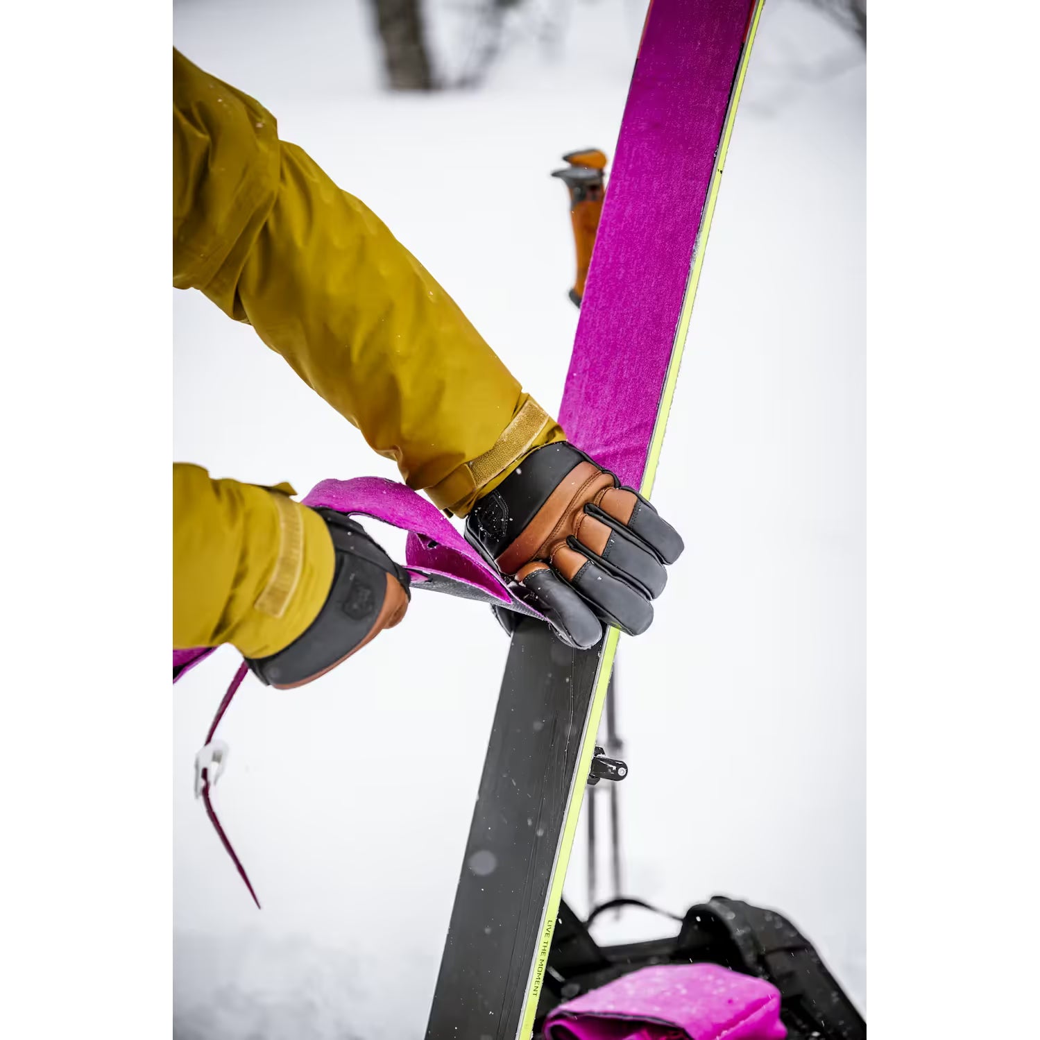 Fall Line 5 Finger is a warm ski glove for freeriding and snowboarding. This shorter model features a neoprene cuff that fits smoothly under the shell jacket's sleeve. Made of impregnated cowhide using outseams that provide comfort and a tighter pole grip. It includes a removable synthetic liner that is easy to dry and wash, as well as foam insulation for extra warmth and stability. Technical details contribute to a practical functionality on the mountain. A wrist strap, for example, reduces the chance of dropping a glove when answering the phone. And an included carabiner allows you to secure the gloves on your jacket or backpack when not in use. Perfect for those who prefer off-piste just as much as on-piste and who aren't afraid of a little hike. Also available in mitt, 3-finger, and women's models.