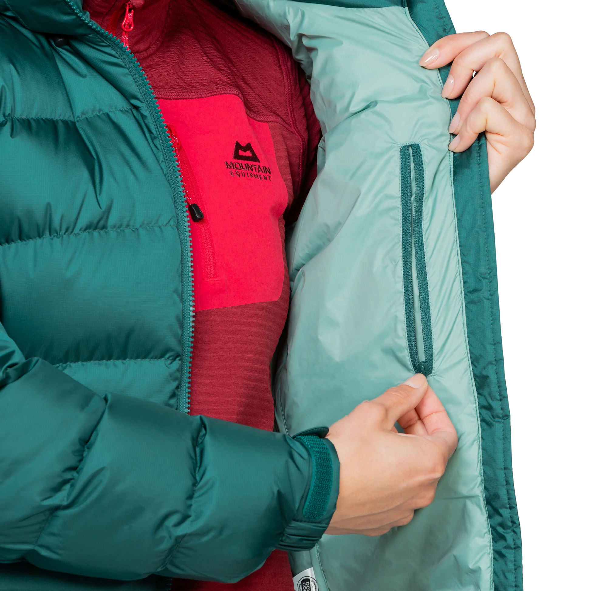 A reliable two-way YKK moulded centre zip is resilient against ice build-up and is reinforced by an internal baffle to seal in heat. Internally, a zipped security pocket stores essentials, while two hand warmer pockets keep fingers toasty at camp or store items requiring quick access when moving.