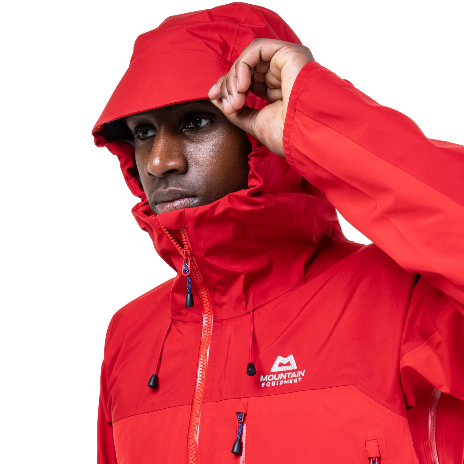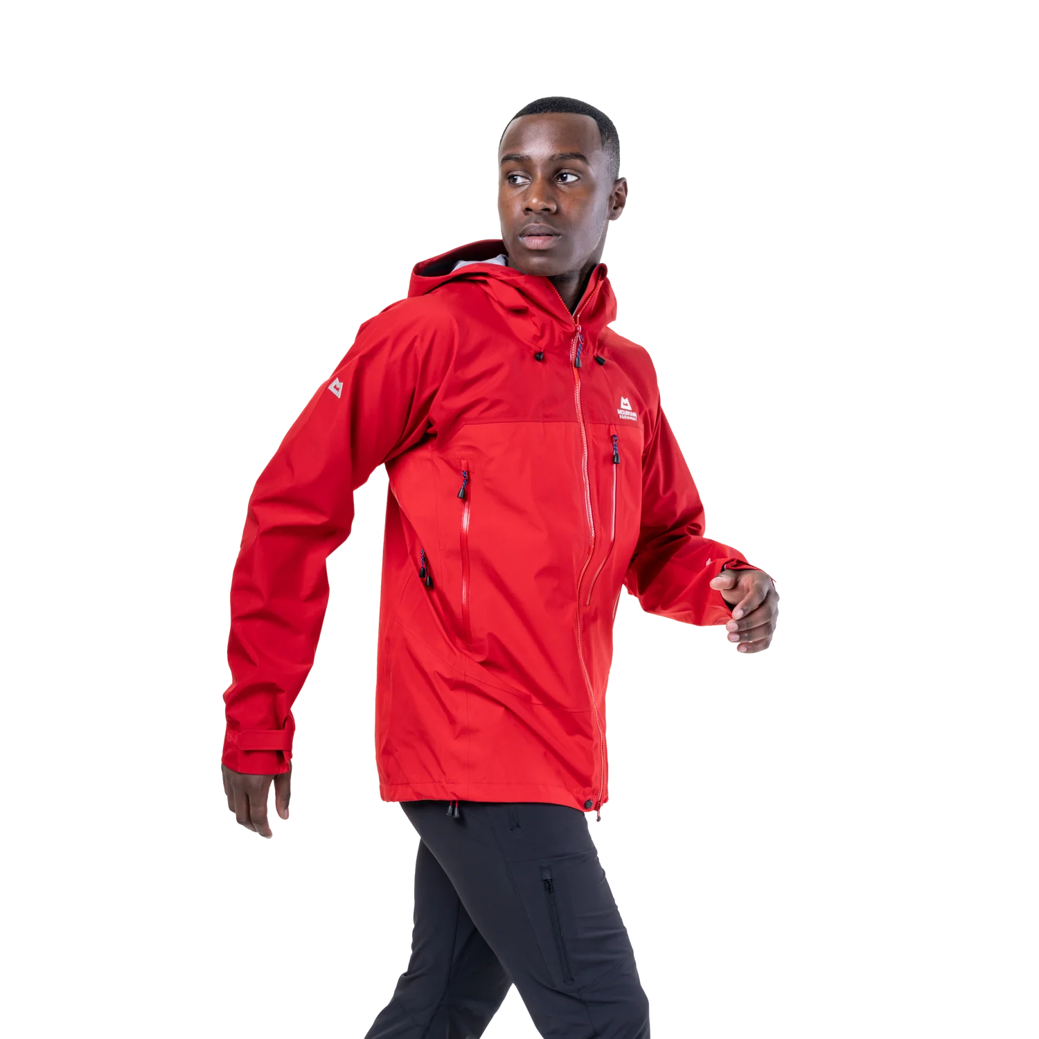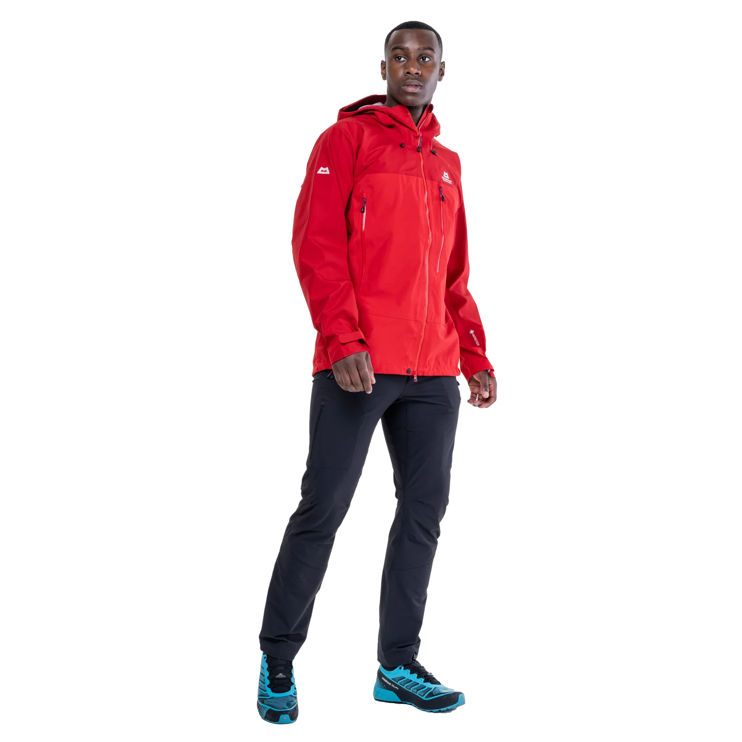 The peaked helmet-compatible hood is roomy and fully adjustable, facilitating a secure fit in the face of strong winds. The Alpine Fit minimises excess fabric, avoiding flapping or bunching without feeling restrictive, and articulated pre-shaped sleeves facilitate dynamic movement, whether coiling ropes, shouldering packs or using axes. Adjustable hem drawcords and laminated cuffs help accommodate layering and seal out driving rain, offering complete protection in very wet weather. At the same time, large pit zips let you regulate temperature and manage moisture buildup during strenuous uphill legs or in humid conditions.