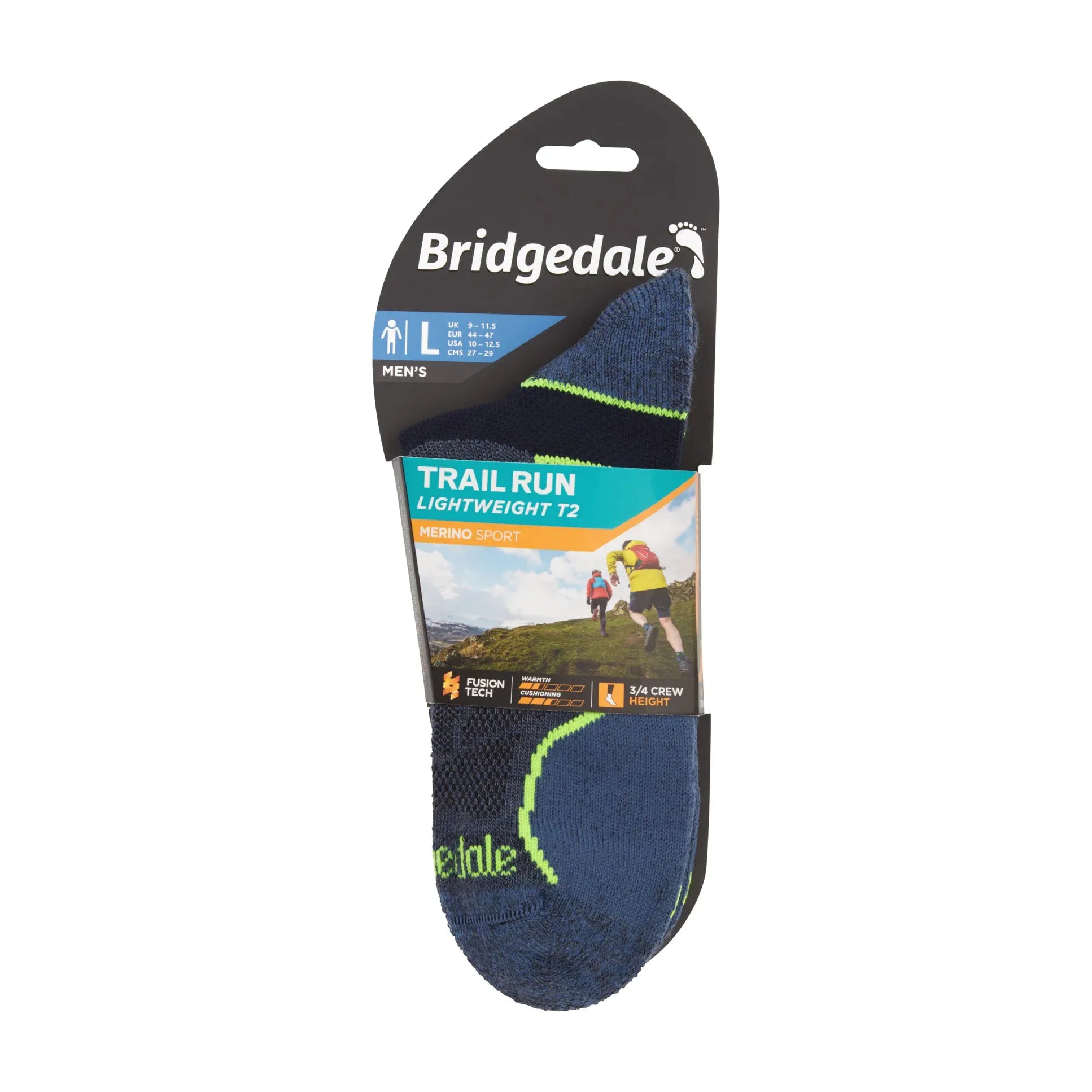For serious runners who like to explore the worlds trails at a faster pace. The Trail Run Lightweight Merino Sport has T2 targeted microcushioning combined with ventilation for the perfect balance of protection and comfort on the toughest terrain. Merino Sport Fusion Technology provides resilient padding, moisture wicking, odour control and outstanding durability on the trails. The Sport Fit gives supportive compression for stability and balance around the ankle and mid foot and the zero debris cuff gives an extended close fit to prevent debris getting in and this means your sock won’t slip down or bunch in your footwear. The natural toe box is wide and un-restrictive, allowing your toes to splay when running and the reinforced seam prevents splits and blow outs when descending. Built on a structure of LYCRA® and set by our Thermo Fit process ensuring the sock returns to its original shape and size after every wash. These socks deliver fantastic comfort for running whether on or off the trails.