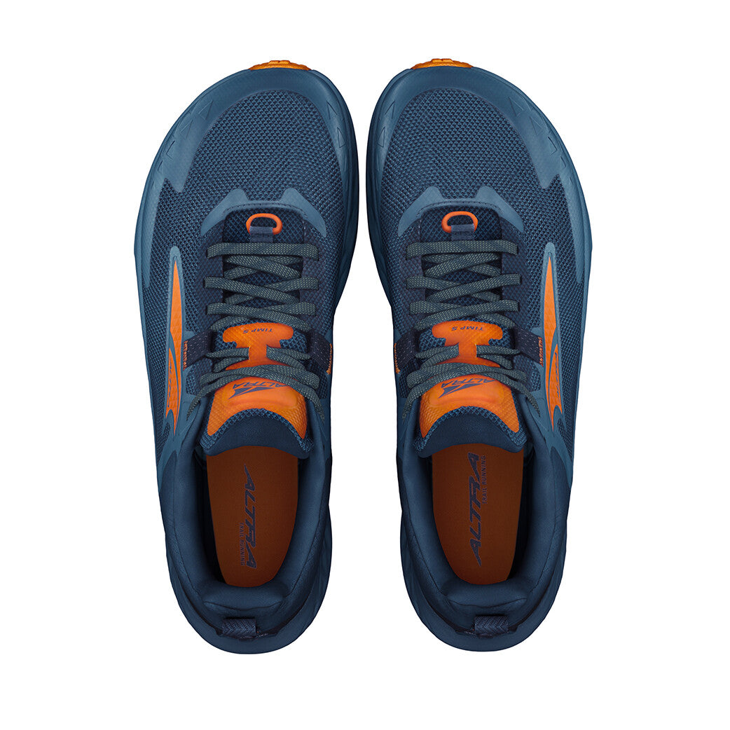 It’s grippy. It’s light. And it’s ready to get rowdy. This is trail running in the new Timp 5. We built it with the same comfort you love but dropped a few grams. With a lighter weight, deliver an all-day full send on the trail. A new grippy outsole gives you the confidence to unlock the magic of rowdy terrain. According to Vibram®, the Vibram® Megagrip outsole offers unparalleled grip on both wet and dry surfaces. Stay comfortable on the toughest of trails with an updated Altra EGO™ MAX midsole foam compound. It’s designed for light and luxurious performance with a little extra bounce and added durability. Keep moving the way you were designed to. The new Timp 5 gives you a roomy toe box and zero drop, with a secure midfoot so you can make dust clouds. Jump rocks. Run forever.