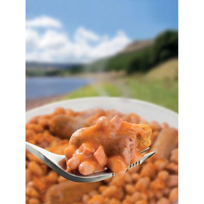 Ingredients: Pea Beans (35%), Water, Vegetarian Sausage (15%) (Rehydrated Textured Soya Protein (Water, Soya Protein, Potato Starch, Wheat Gluten, Stabiliser: E341(ii)), Water, Onion, Rapeseed Oil, Seasoning (Flavouring, Dextrose, Yeast Extract, Herbs & Spices, Salt, Sugar, Herb & Spice Extracts), Dried Egg White, Soya Protein, Stabiliser: E461), Omelette (8%) (Egg, Milk, Rapeseed Oil, Salt, Thickener: E415; Pepper), Tomato Puree, Vegetarian Ham (5%) (Water, Vegetable Protein (Soya, Wheat Gluten), Sunflower Oil, Egg White, Starch (Potato, Wheat), Natural Flavouring (Egg), Spirit Vinegar, Milk Protein, Spices, Garlic Puree, Dextrose, Flavouring, Smoke Flavouring, Salt, Acid: E330; Colour: E172; Ferrous Fumarate, Vitamin B12), Sugar, Rapeseed Oil, Modified Maize Starch, Maize Starch, Salt, Colour: Paprika Extract; Onion Powder, Ground Paprika, Flavouring.